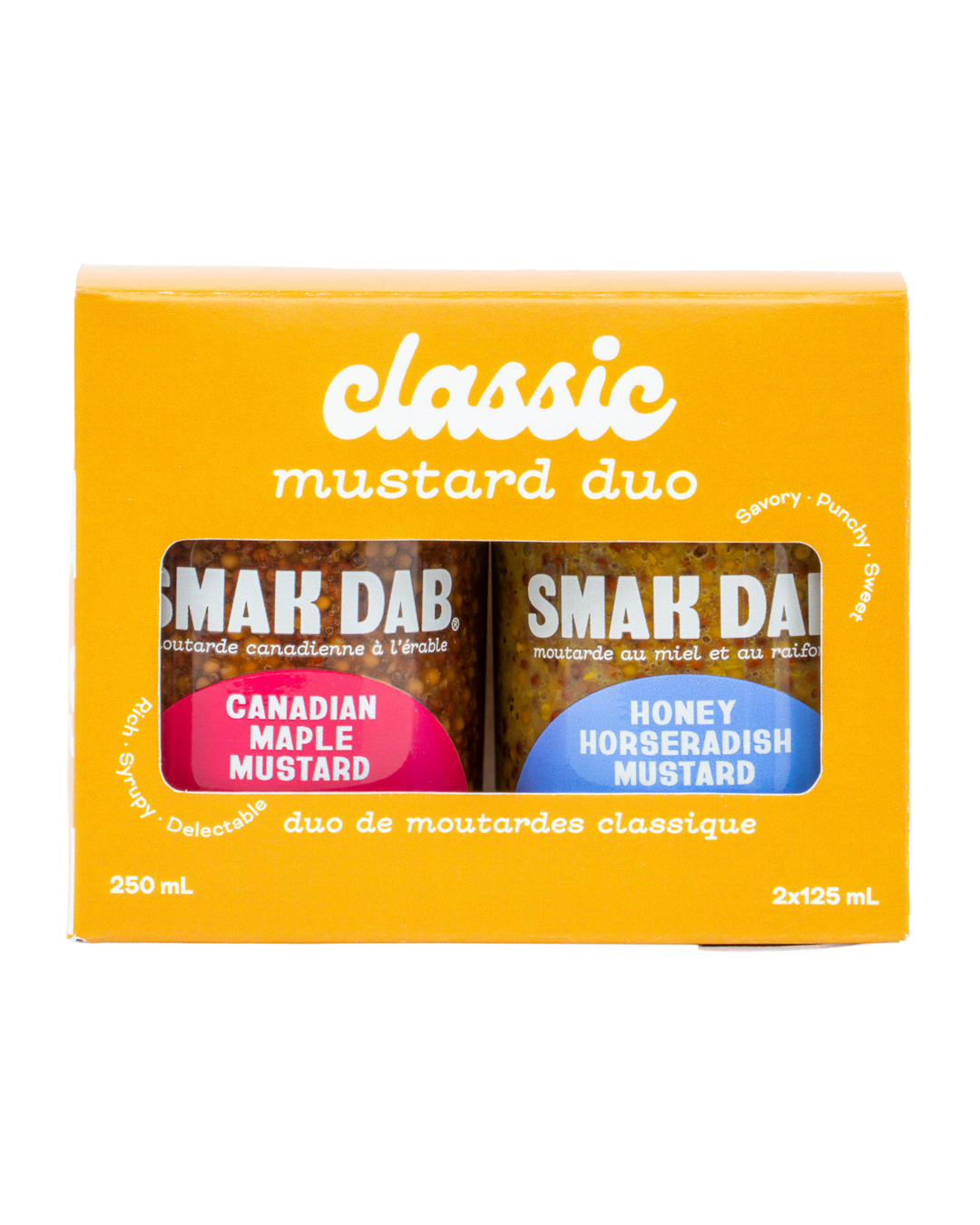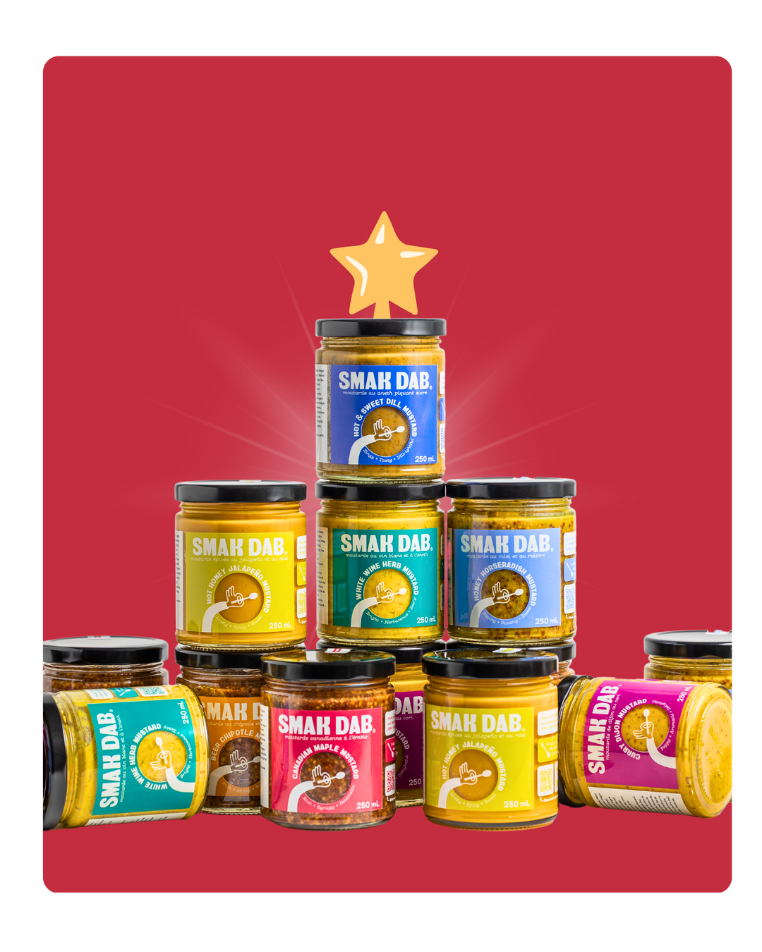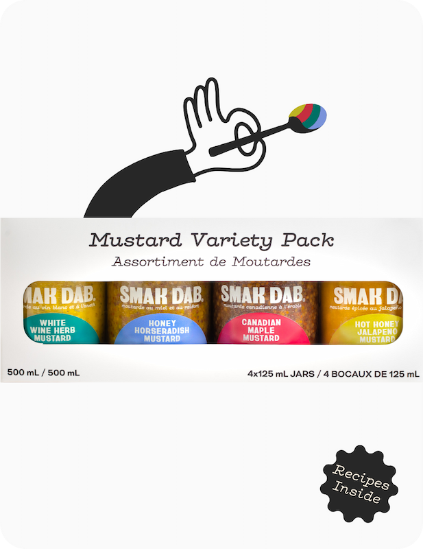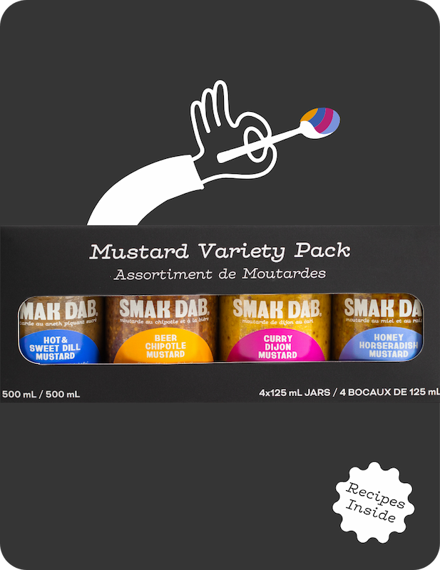 Think Global, Act Local: At Smak Dab, we’re committed to a greener future. Our aim is to support local communities and embrace more sustainable kitchen practices. A major way we do this is our focus on locally sourced ingredients. We use prairie-grown mustard seed, craft-brewed beer, Quebec maple syrup and Canadian golden honey. Delicious and not flown halfway round the world.